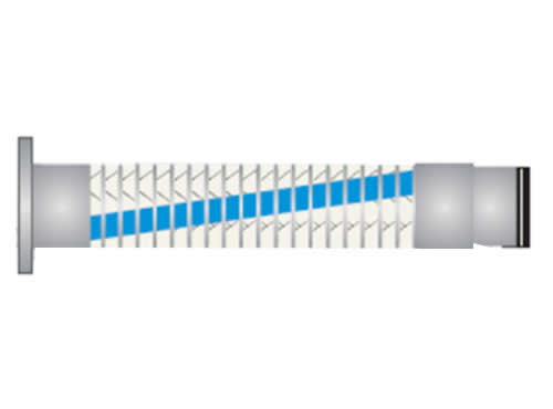 SPECIAL P – II: Cubierta Blanca con franja Negra, de polipropileno resistente a los químicos y aromáticos al 100%, alambres interno y externo de acero inoxidable con refuerzos de polipropileno. Material resistente polipropileno tubo impermeable a los gases.